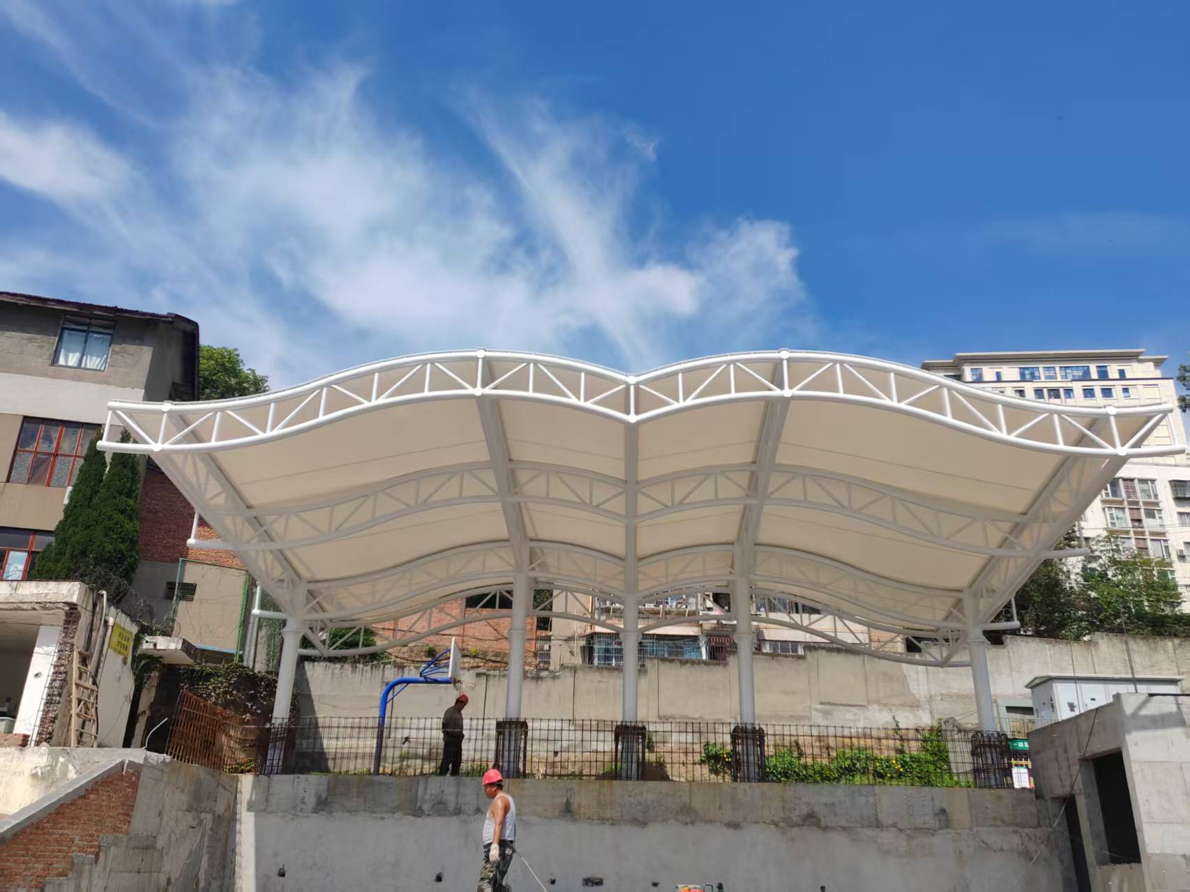 公司在膜结构行业深耕多年,主营膜结构车棚、膜结构充电桩车棚、膜结构看台、膜结构球场遮阳棚及膜结构景观等项目,我们拥有专业设计师团队,自有4000平钢结构车间及2300平膜布车间,是集专业设计、生产加工、现场安装及售后于一体的综合性企业。