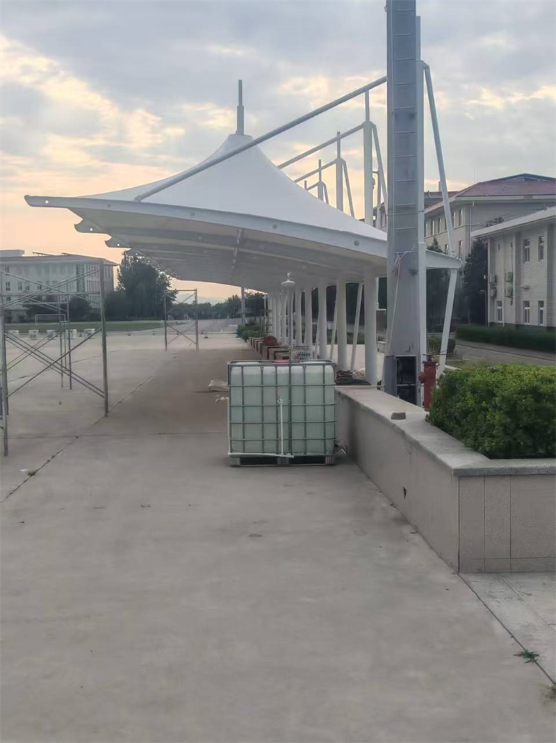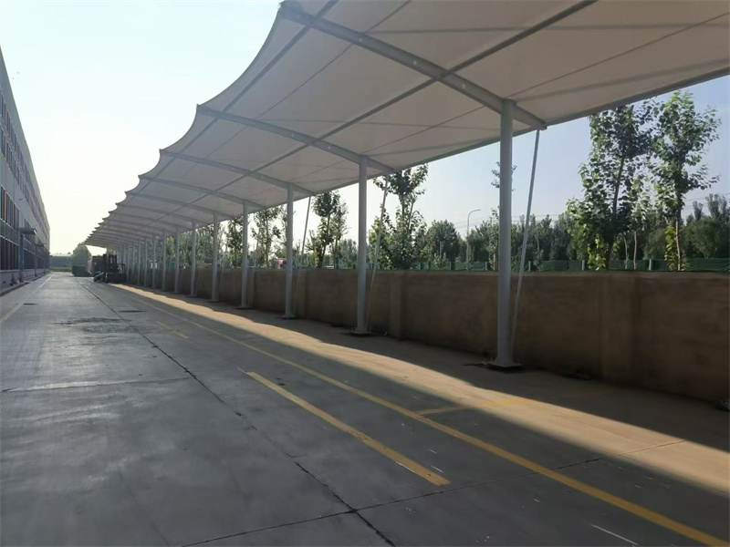 再者,透光节能。膜材透光率为 10% - 20%,白天停车区域自然光充足,无需额外开灯,节省用电成本,且光线柔和不刺眼,兼顾采光与遮阳效果。另外,车棚轻量易建成本优,自重仅为传统钢混车棚的 1/3 - 1/5,对地基要求低,大幅减少地基施工成本;模块化安装,施工周期比传统车棚缩短 50%以上,施工过程不影响场地正常使用。