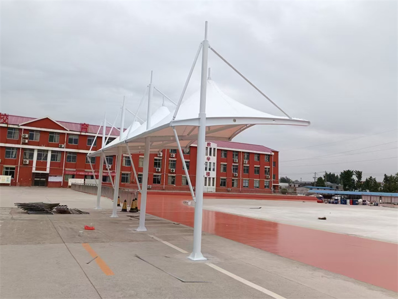 - 造型灵活美观:膜材可张拉成弧形、波浪形、伞形等多种造型,搭配不同颜色(白色、灰色、彩色),能与校园、体育场、文旅场馆的整体建筑风格相融合,提升场地颜值,成为标志性景观。