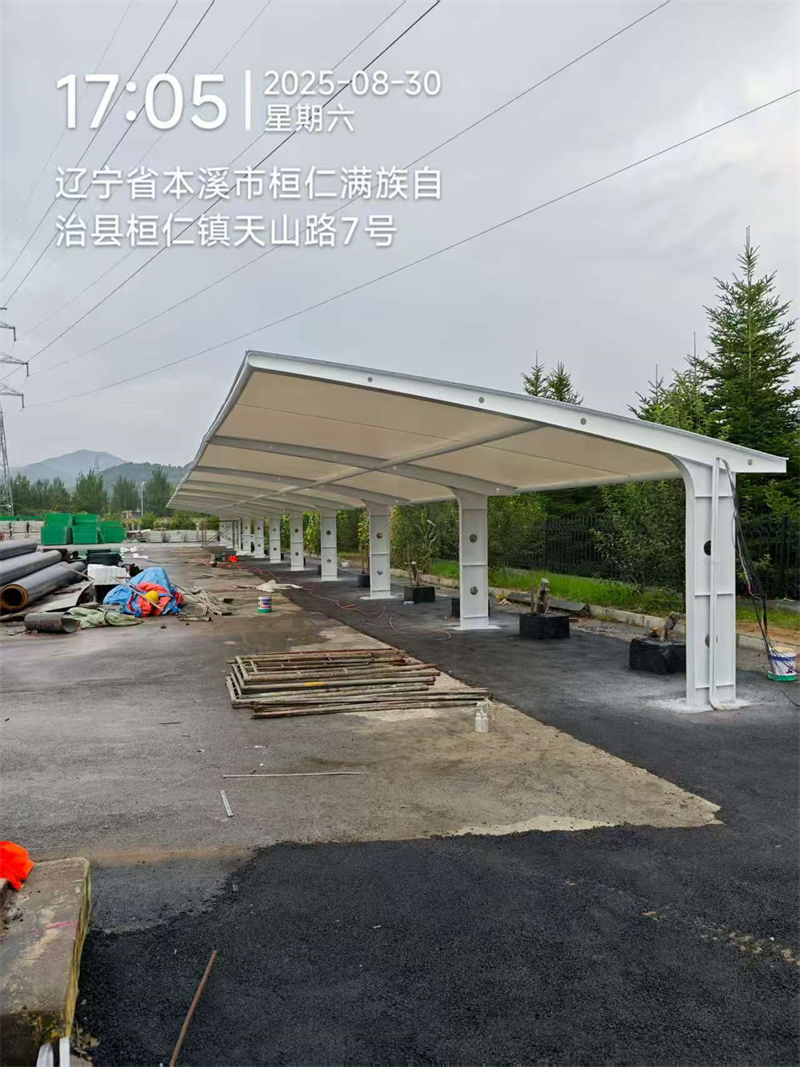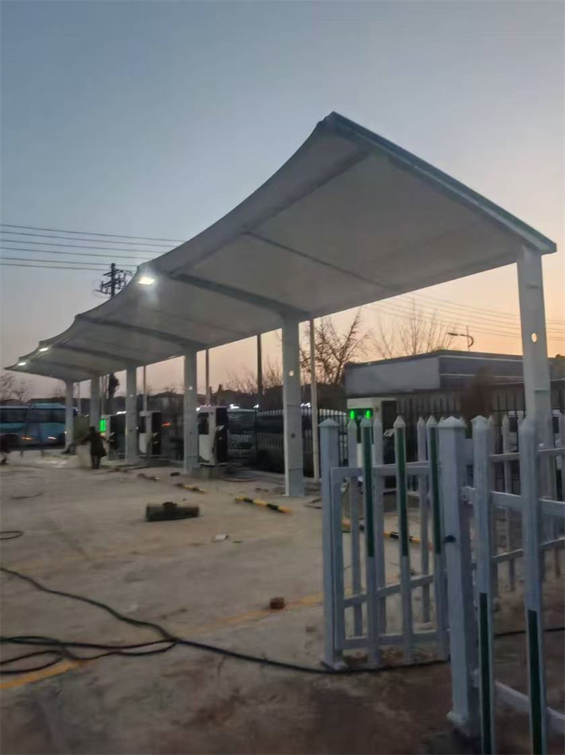 防护与设备保护:顶棚可有效遮挡日晒雨淋、减少灰尘堆积,降低充电桩因雨水短路、高温老化的故障概率,延长设备使用寿命;部分膜结构 / 钢结构车棚具备抗风、防雷、防火相关设计,符合行业安全标准。 多元结构可选:常见有钢结构、膜结构、铝合金结构;膜结构造型灵活,透光性好;钢结构稳固耐用,适配多车位连片建设;可根据场地尺寸、预算与环境风格定制外观与布局。 兼容主流充电需求:预留标准接口,支持 7kW—120kW 不同功率的交 / 直流充电桩安装,适配市场主流新能源汽车;充电区预留充足操作空间与散热通道,保障充电过程平稳。 提升使用体验:充电时无需露天等候,夏季可降低车内温度,雨天避免用户淋雨操作;配套照明、监控、导视标识,方便夜间使用与日常管理。