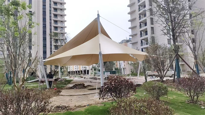 造型灵活:可塑造双曲、波浪、锥形等多种自由曲面,突破传统直线建筑的局限,能结合场地环境定制专属形态; 轻质通透:膜材自重远低于传统混凝土、钢结构屋面,大幅降低基础施工成本;部分膜材可形成柔和漫射光,减少日间人工照明,夜间配合灯光可营造独特光影氛围; 施工便捷:构件多在工厂预制,现场拼接安装,工期相对传统建筑更短,对周边环境干扰较小; 绿色耐用:优质膜材具备抗紫外线、抗老化性能,且部分材料可回收再利用,符合绿色建筑的发展方向; 空间高效:可实现大跨度无柱覆盖,提升景观空间的开阔感与利用率。